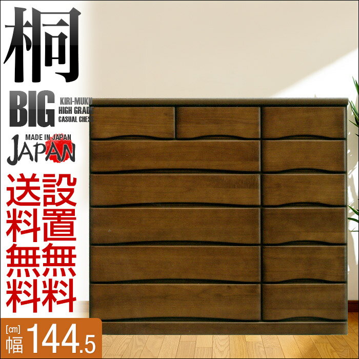 【送料無料/設置無料】 日本製 大型桐チェスト ビッグ 幅144.5cm ブラウン 完成品 収納箪笥 リビングチェスト 整理チェスト 洋服チェスト 桐 整理箪笥 収納箪笥