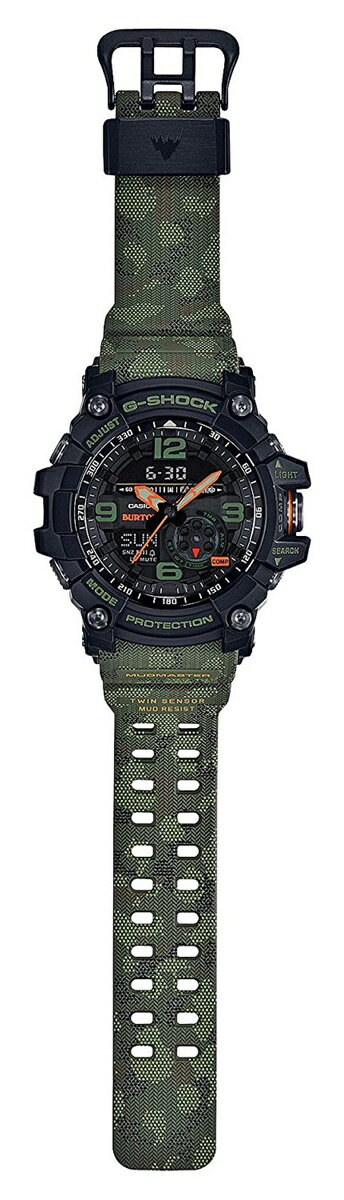 冬山だけでなく、緑豊かな壮大な自然の中でのアクティビティー使用を想定したデザインは、グリーンのバンド全体にダックカモ柄を施し、ベゼルのブラックとオレンジの指し色とを合わせた印象的な仕上げとなっています。