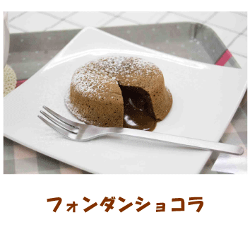 フォンダンショコラのレシピ(ラムカン2個使用) 材料(2人分) ・卵 1個 ・ビターチョコレート 40g ・無塩バター 40g ・砂糖 15g ・小麦粉 大さじ3 1.ビターチョコ・バターを湯煎して溶かす。
