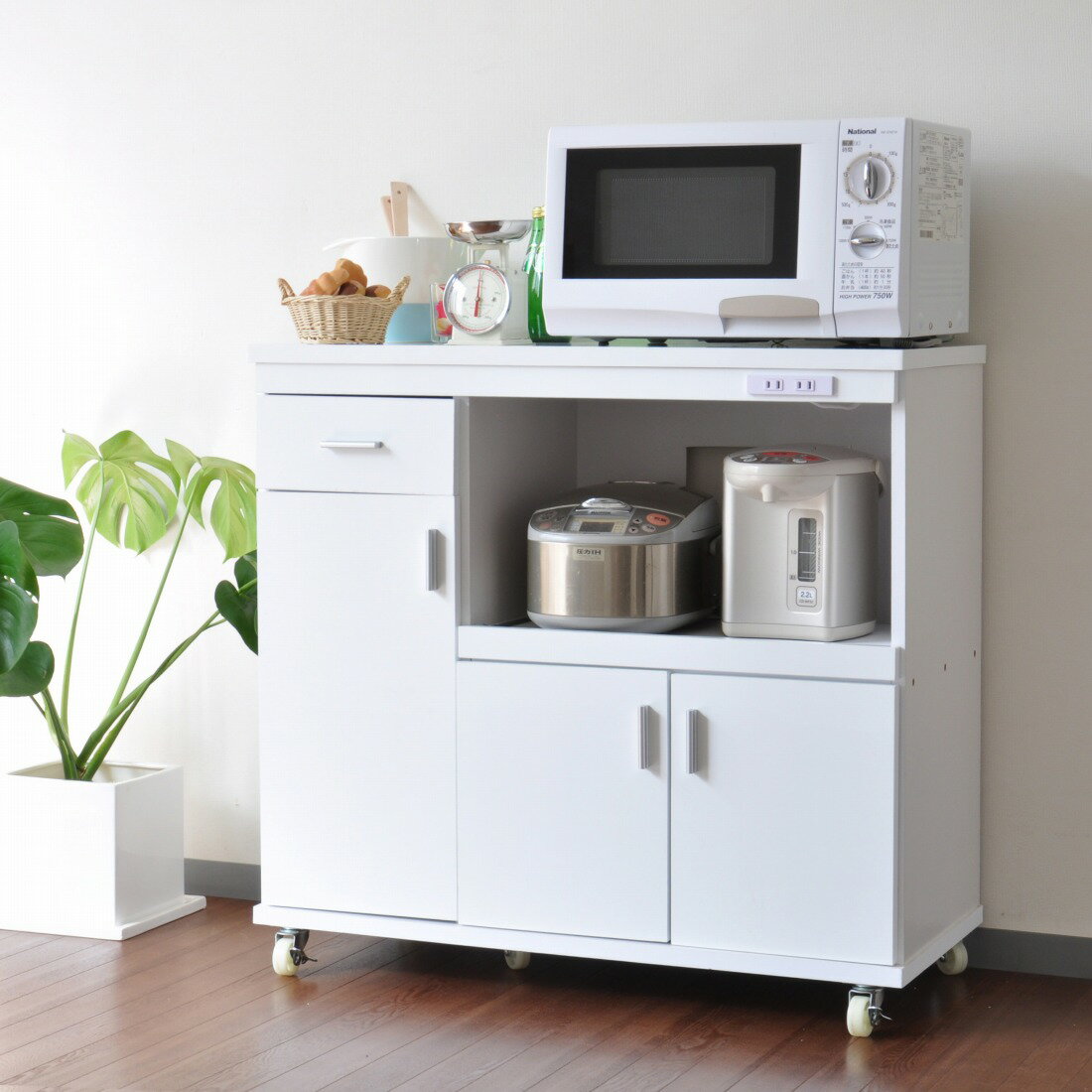 <3,680円引き> レンジ台 コンセント付き 送料無料 ラック 80幅 キッチンキャビネット キッチンボード キッチン収納 キッチン 収納 引き出し 台所収納 キャビネット 引き出し付き 白 ホワイト アンティーク調 コンパクト 北欧 おしゃれ