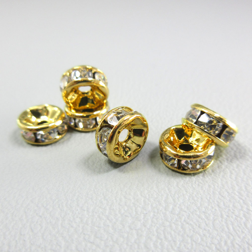 【壊れにくい高品質タイプ】ラインストーンきらきらロンデル 7mm ノーマル型 金色 10個入り《 chkomc-rondell07ng-010 》【クリスタル神戸】
